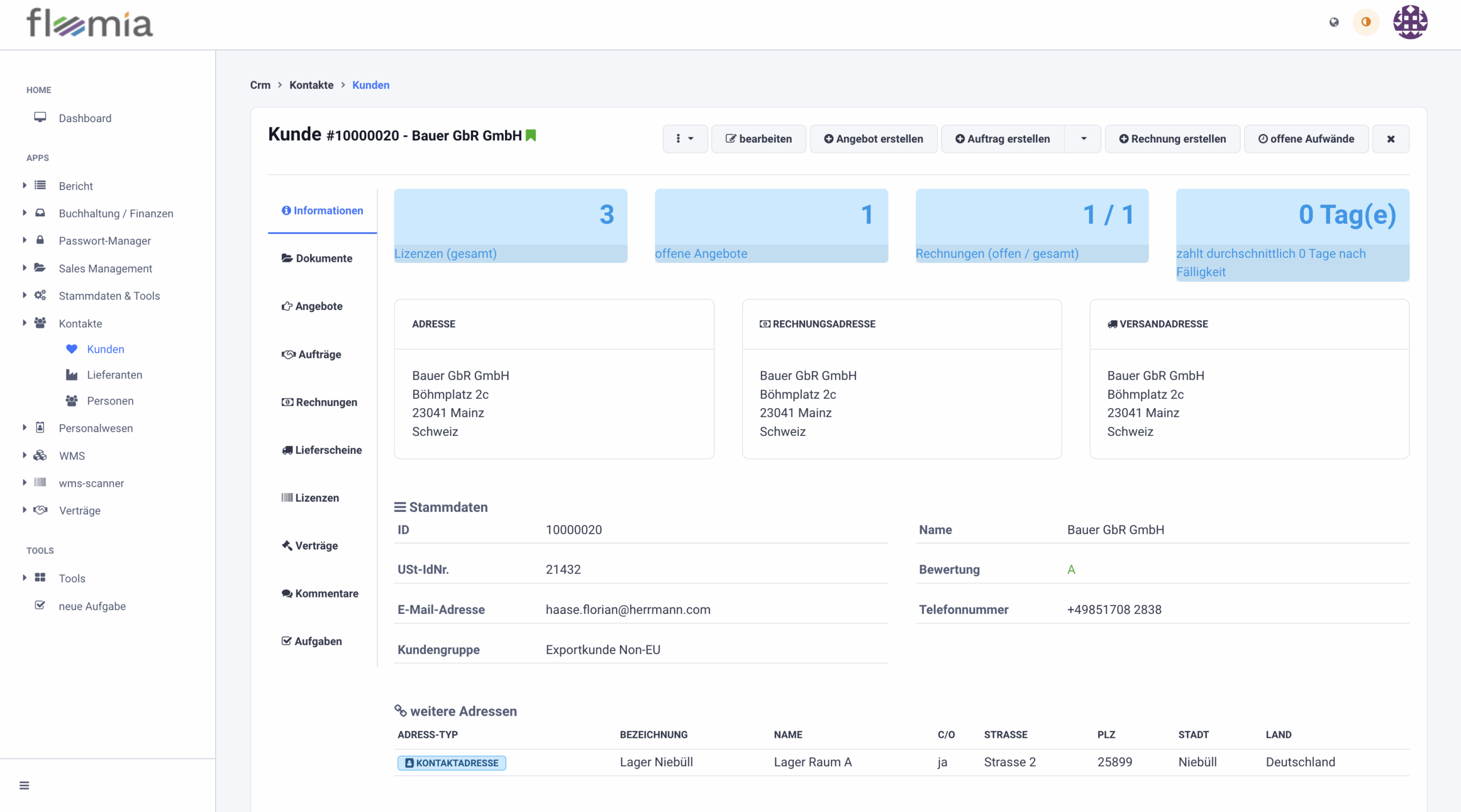 Verwalte Leads, Kunden und Lieferanten zentral. Profitiere von automatisierten Prozessen, individuellen Preisgestaltungen und flexibler Angebotsverwaltung.