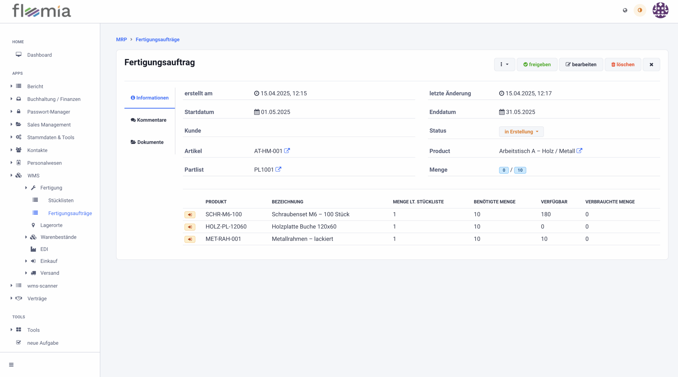 Verwalte Stücklisten, Produktionsaufträge und Materialbestände zentral. Steigere die Effizienz durch automatisierte Buchungen und nahtlose Integration mit CRM und WMS.