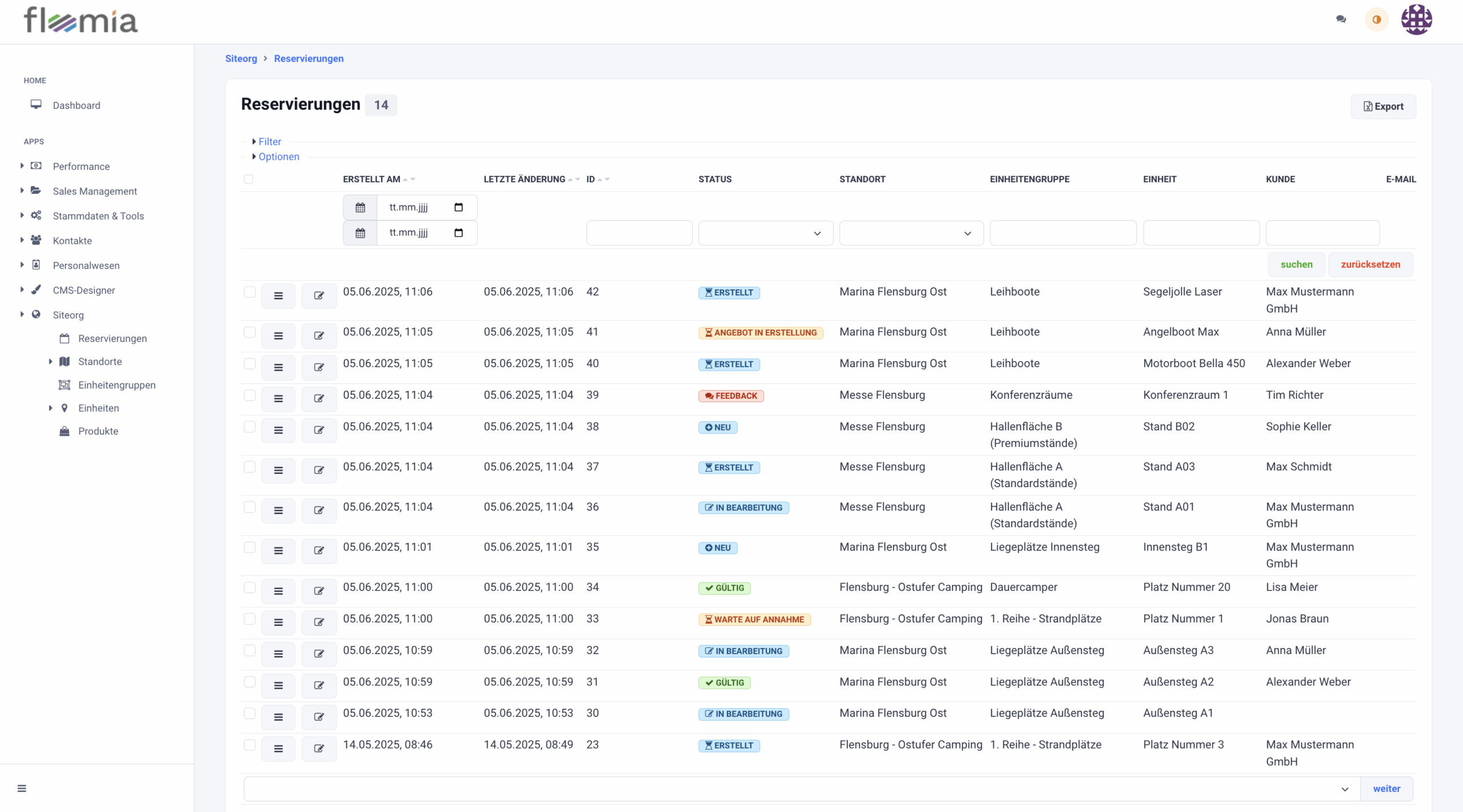 Floomia SiteOrg ist die ideale Plattform für die Verwaltung von Marinas – von der Buchung von Liegeplätzen bis zur Abrechnung. Mit Funktionen wie Flächenverwaltung, saisonaler Buchungssteuerung und einer benutzerfreundlichen Oberfläche optimierst du jeden Aspekt deines Hafenbetriebs. Standortunabhängig und individuell anpassbar unterstützt dich SiteOrg bei einer nahtlosen Planung und Durchführung.